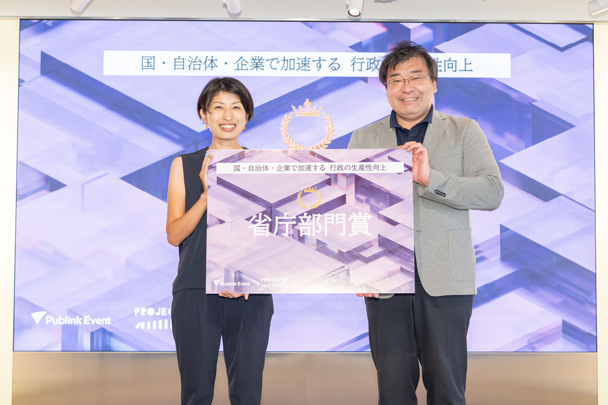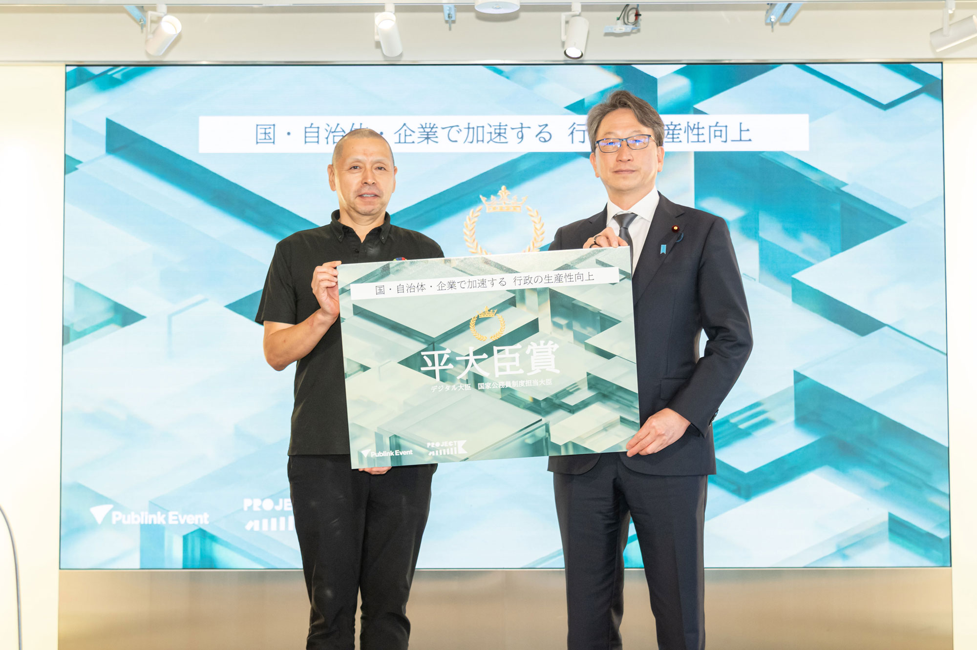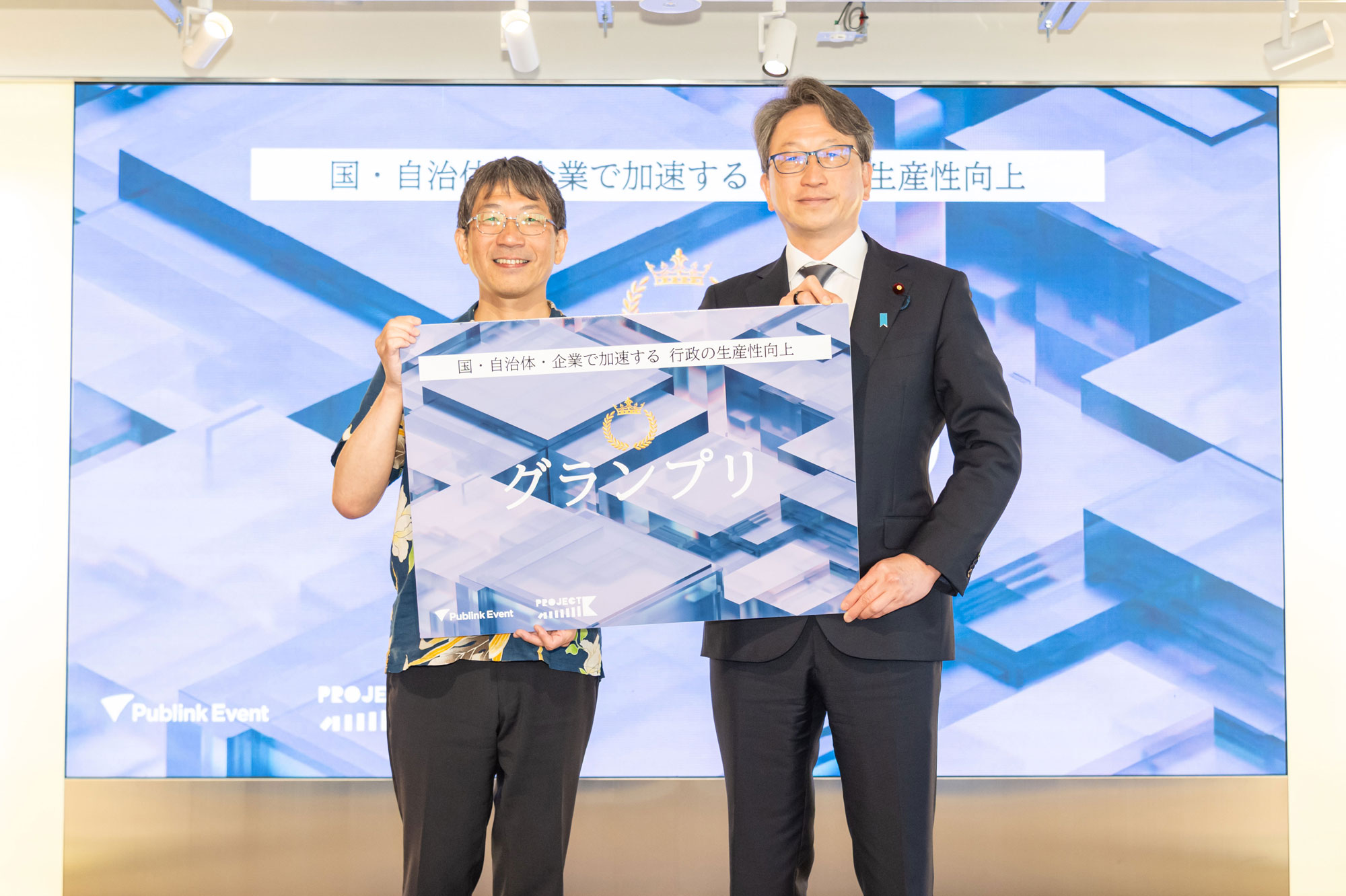 2回目の開催となる今回は、「行政の生産性向上」をテーマとし、デジタル大臣、国家公務員制度担当大臣 平将明氏、内閣府 地方創生推進事務局長 高橋 謙司氏をはじめとする行政のキーパーソンを審査員に迎え、官民共創ピッチを開催。行政の生産性向上をキーワードに、4省庁、3自治体、3企業より、業務改革、組織改革、DX、AI活用、データ活用、アウトソーシングなどの先進的な取り組みが発表され、グランプリ1賞を含め合計5賞が決定しました。