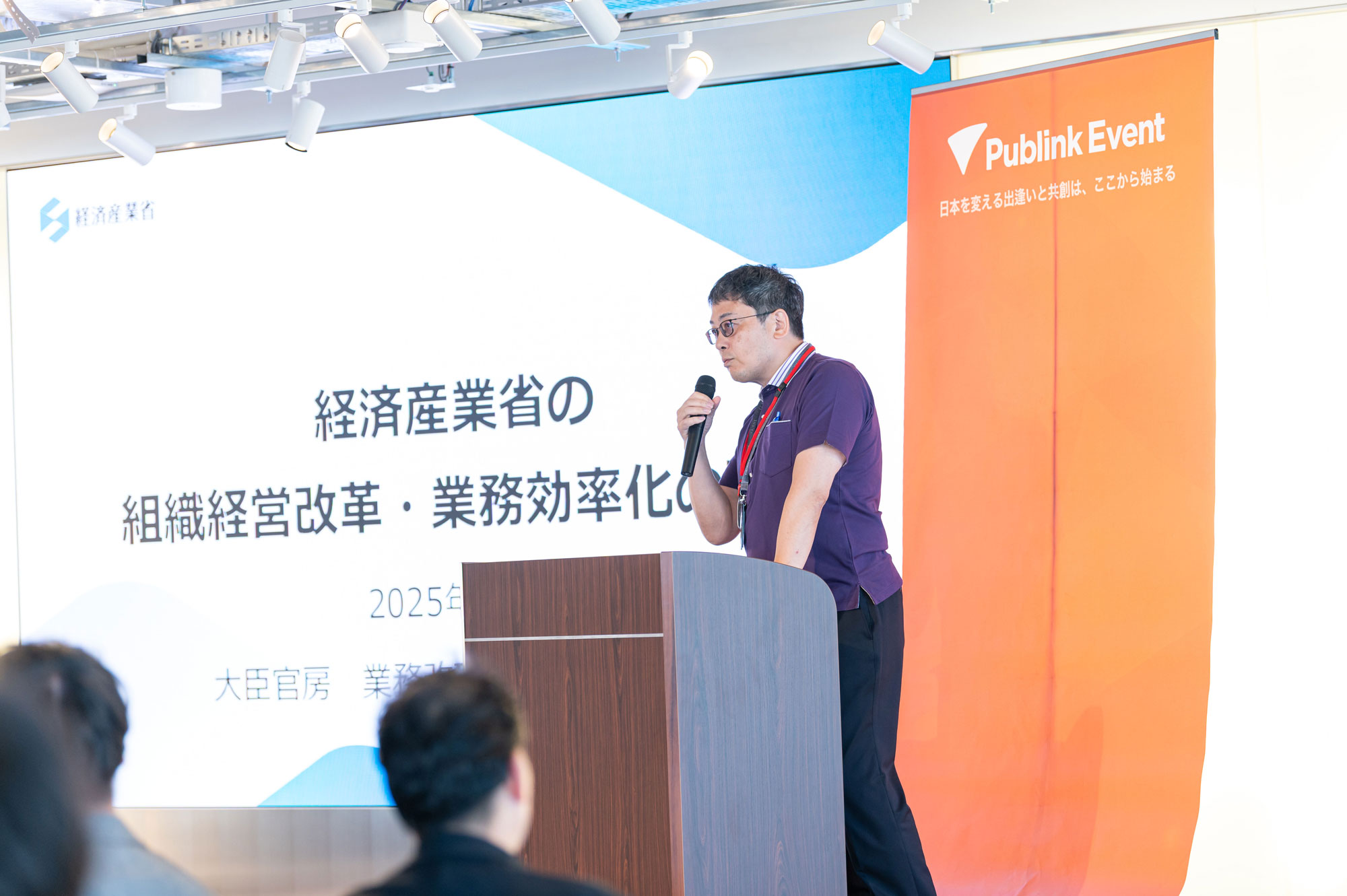 本イベントは、霞が関の公務員を中心とした「プロジェクトK(新しい霞ヶ関を創る若手の会)」との共催が実現しました。代表の西山直人氏は、自身の経験と葛藤を交えながら、共催の意義を強調しました。