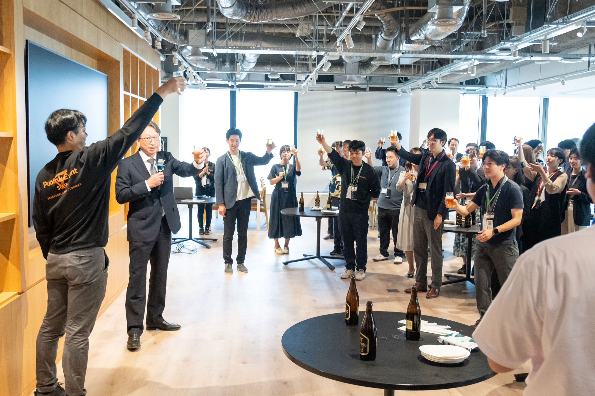 ほぼすべての来場者が参加した今回のミートアップ。乾杯とともに参加者、登壇者、官民プレイヤーが混じり合った交流がスタートしました。プレゼン中に抑えられていた参加者皆さんの熱量が、ここで湧き出す様子は、Publinkが掲げる「日本を変える出逢いと共創」の一歩になったと感じました。