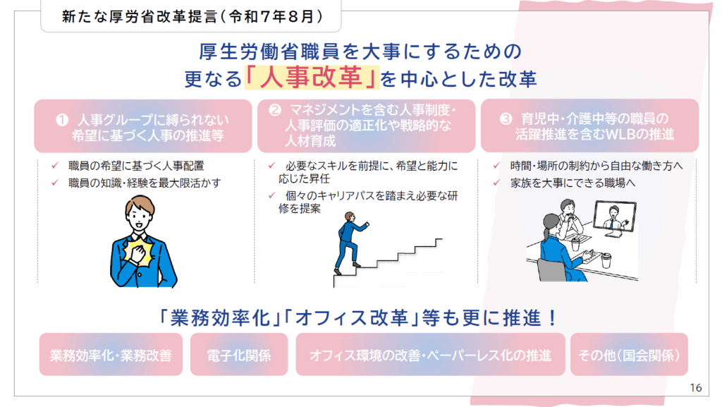 令和7年8月には、新たな提言を大臣に提出。今後も「人事改革」を中心とし、更なる改革に取り組んでいきます。