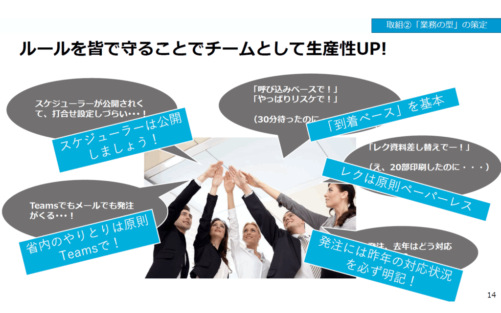 「業務の型」の策定では、全省で共有できる42のルールを整備しました。