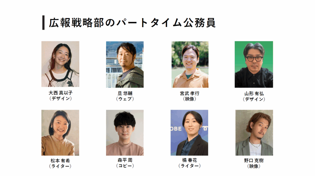 そこで、カメラマンなどリモートワークの副業人材約40名を登用し、動画クリエイターなど専門人材8名を職員として採用。これにより、従来のデザイン会社・広告会社への業務委託に比べて、大幅な予算を削減と高品質な成果物制作を同時に実現しました。