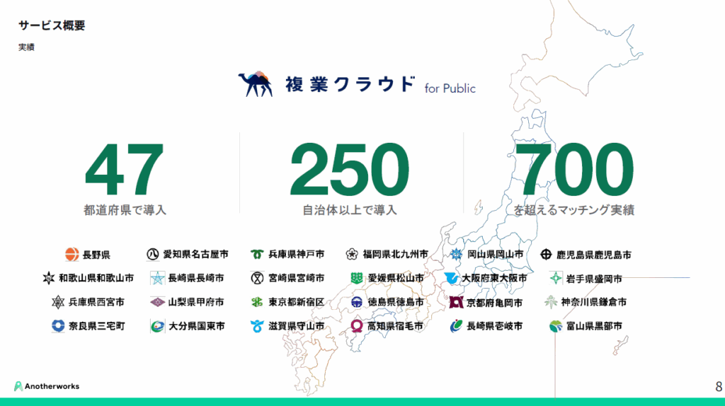 Another worksの『複業クラウド for Public』は、行政の人材不足という課題を、“複業”によって解決するマッチングサービスです。
